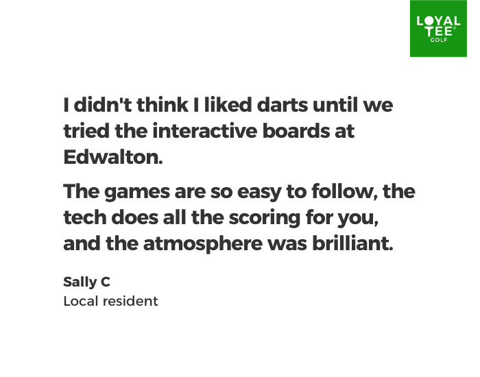 Step up to the oche at Edwalton Golf Centre with our brand-new Interactive Darts. Combining classic play with automated scoring and high-energy game modes, we’ve taken the math out of the game so you can focus on the fun.